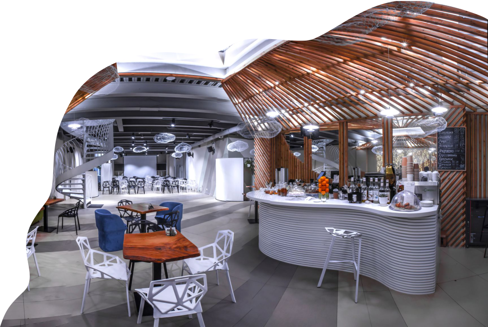 Стильный, современный дизайн пространства, авторская мебель, качественное освещение и простая навигация – сделает пребывание гостей уютным и комфортным.